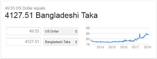 ৪৯.৫৫ ডলার = ৪১২৭.৫২ টাকা ( ১১-০২-২০১৮) |