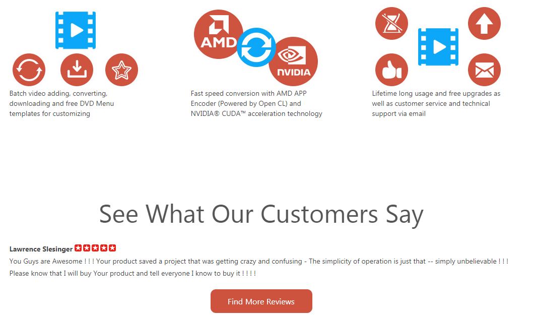 Blu-ray সিডি অথবা ডিভিডি থেকে ডাইরেক্ট কনভার্ট করতে পারবেন তাছাড়াও ভিন্ন ২০০ ফরম্যাটে পরিবর্তনের সুবিধা । আরো আছে Blank ডিস্ক কে ডিভিডি বানানো ডাইরেক্ট , কোন আলাদা সফটওয়্যার লাগবেনা Burn করার জন্য।