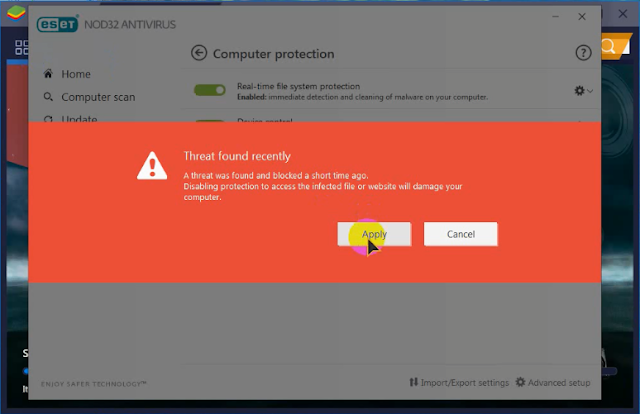 এন্টিভাইরাসের কোম্পানী ভেদে ভিন্ন রকম আসতে পারে Apply বাটনে ক্লিক করুন ভয় পাবার কিছু নেই।