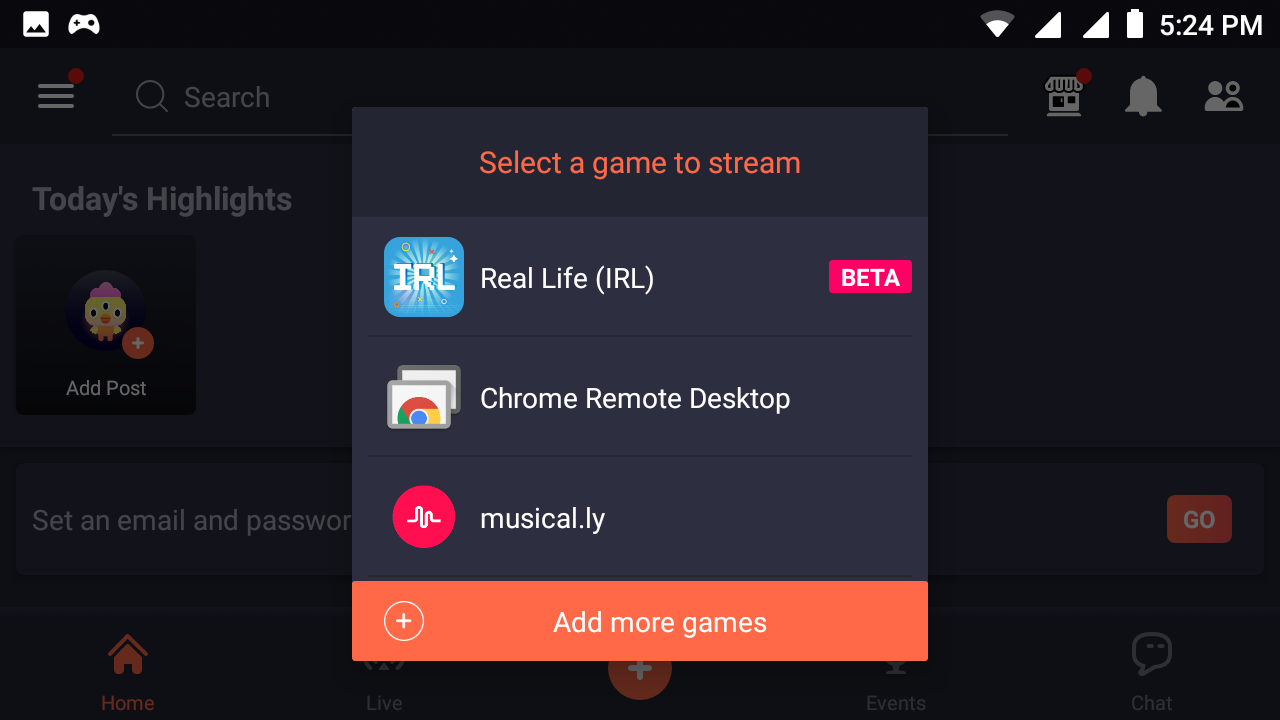 এবং তার সাথে মোবাইল থেকে Video Game Live Stream চালু হয়ে গিয়েছে।