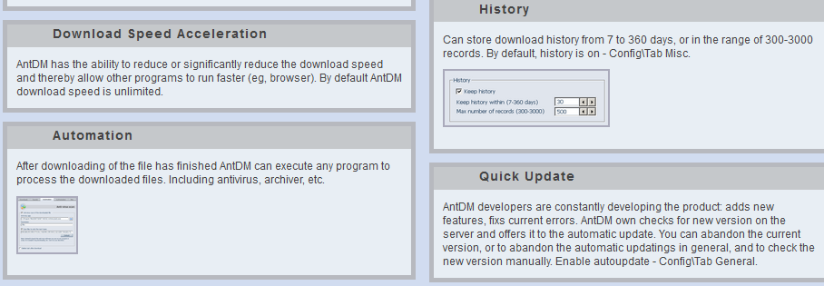 আগেই বলছি রকেট গতির কথা পাশাপাশি যে কোন প্রোগ্রাম ডাউনলোড এবং ইন্সটল করার কাজটাও দিতে পারেন Ant Download Manager কে। আর History থেকে পুরানো কার্যক্রম দেখে নিতে পারবেন আর Ant Download Manager এর আপডেট ভার্সন আসলে তা সহজেই আপডেট করে ফেলতে পারবেন এক ক্লিকে।